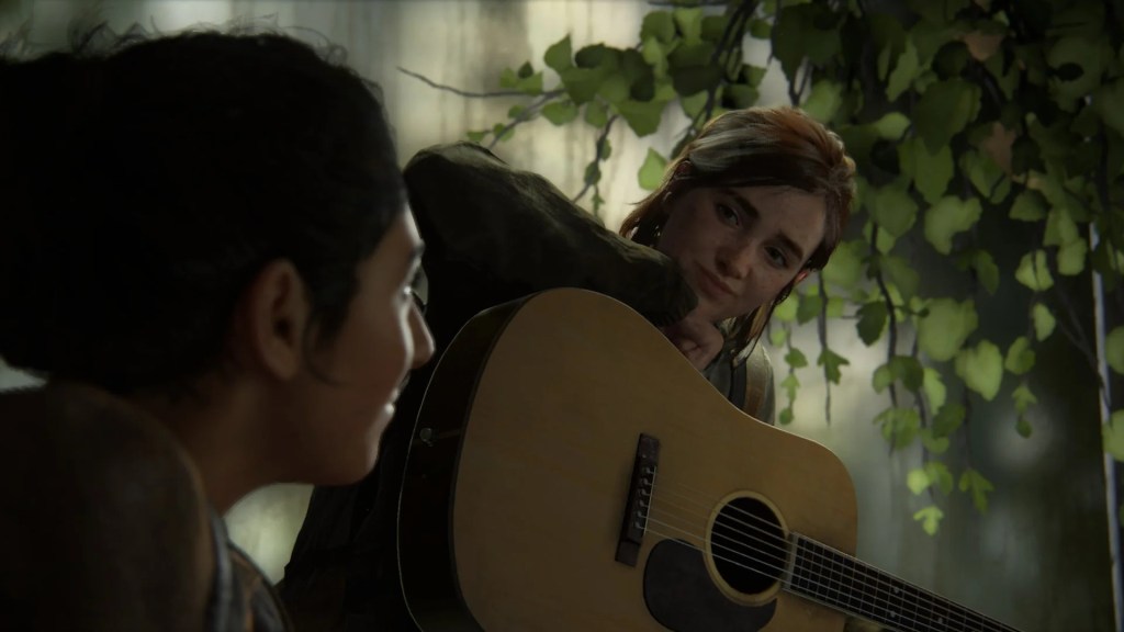 No entanto, os grandes destaques vão para as apresentações musicais de Joel e Ellie. Em uma cena linda e reconfortante, Ellie canta “Take On Me”, da banda a-ha, para afirmar seu amor por Dina e, bem no início do jogo, temos Joel cantando “Future Days”, da banda Pearl Jam, para Ellie.